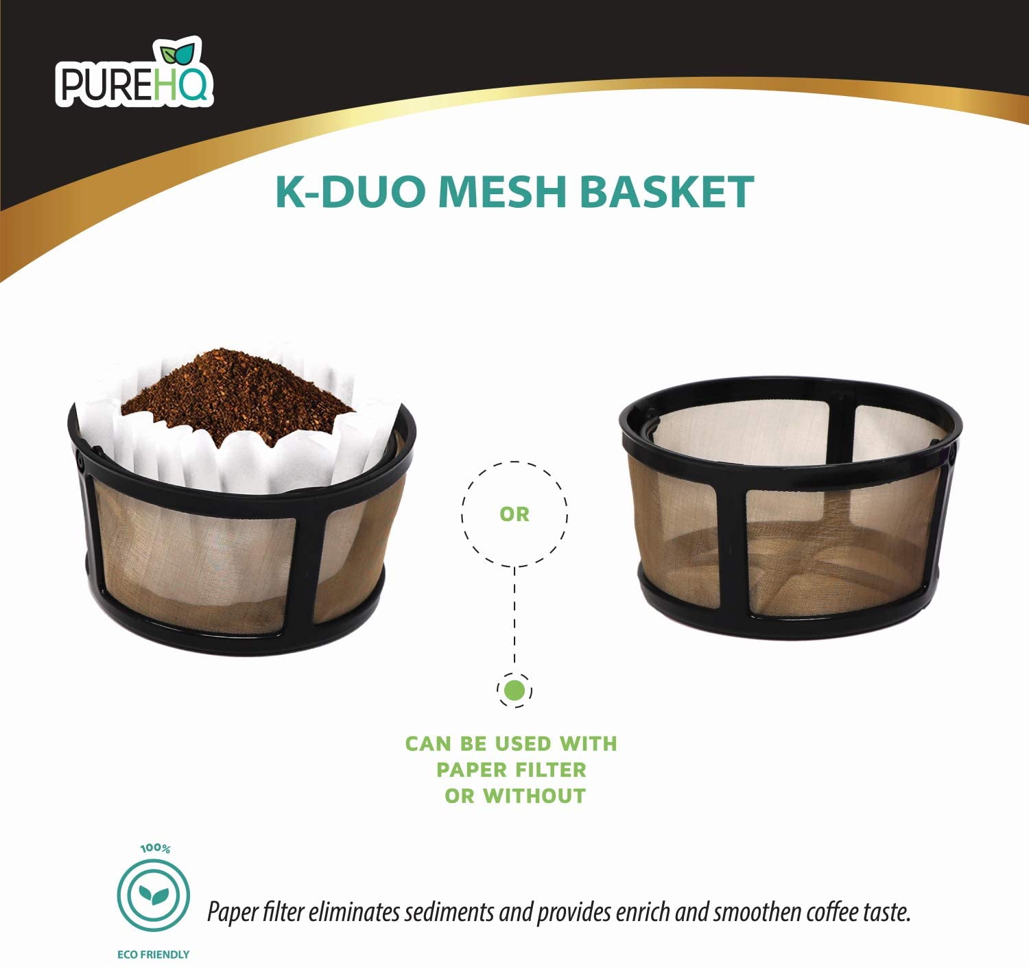 • INCLUDES GOLD TONE MESH FILTER FOR K-DUO, 100 PAPER FILTERS