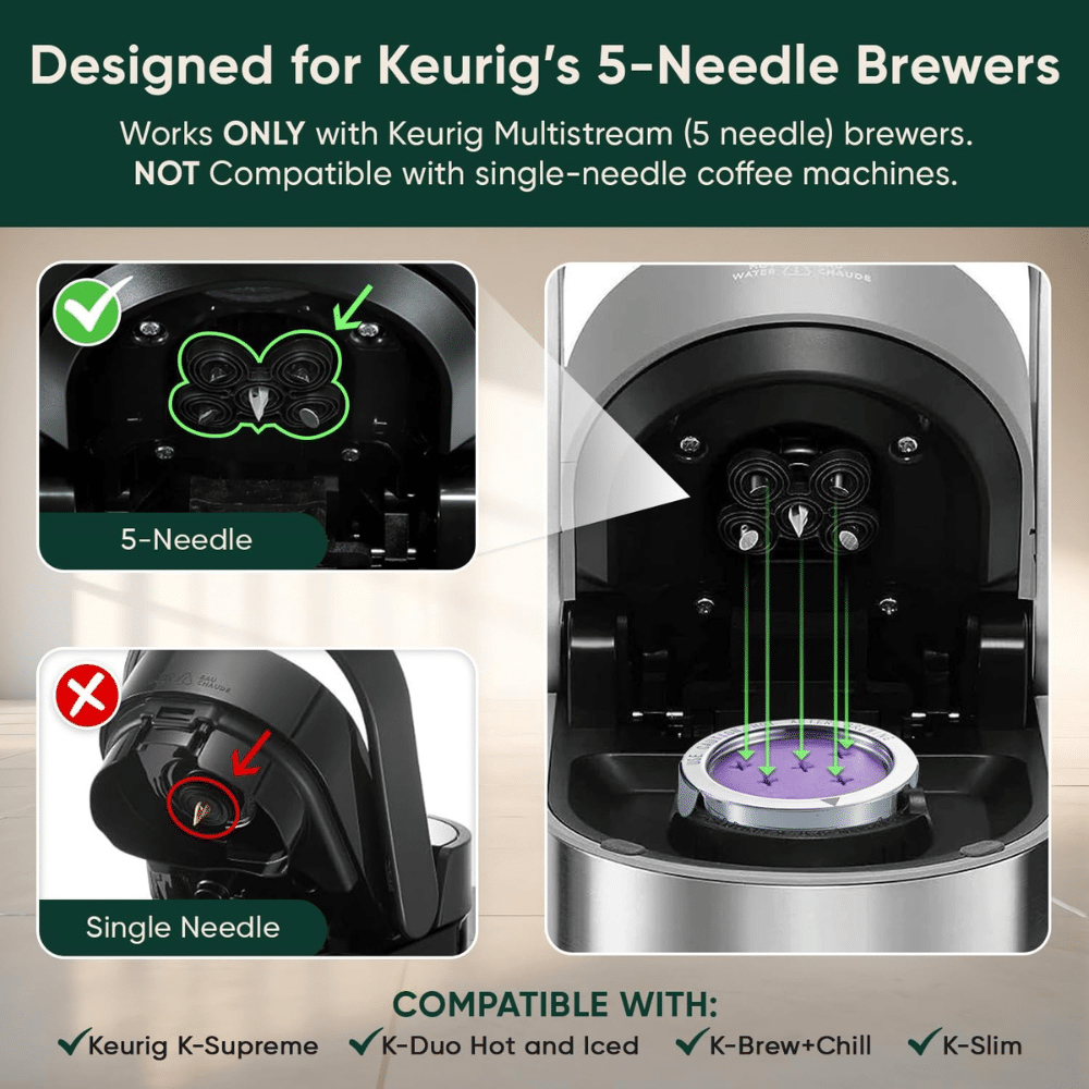 Reusable Stainless Steel K-Cups for Keurig MultiStream Coffee Makers – K-Supreme, K-Slim & K-Crema, 2-Pack